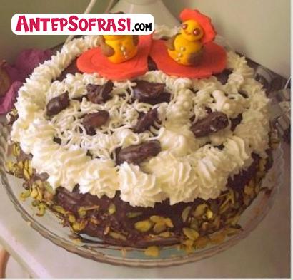 - Pastamız soğuduktan sonra üzerini ve etrafını krem şantiyle kaplıyoruz.