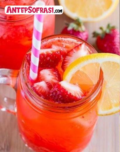 - çilek püresini şekerli soğumuz suya koyun üzerine limon suyunu ekleyin ve güzelce karıştırın.