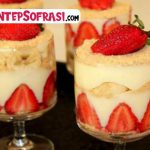- Soğuyan karışımı servis kaselerinize bir kat puding, bir kat çilek ve tekrar puding şeklinde paylaştırarak hazırlayın.
