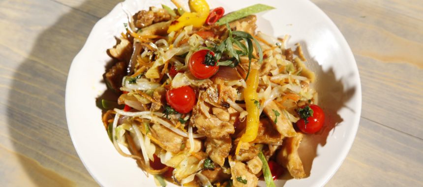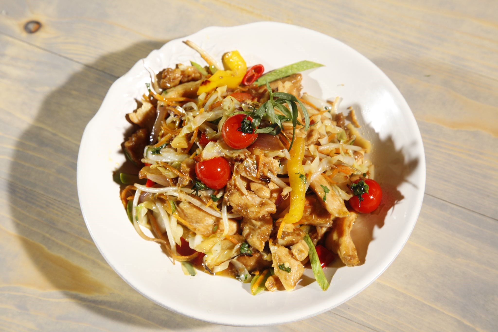 Tavuğu ve sotelenen malzemeyi bir kapta iyice harmanlayıp servis edin.