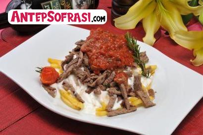 - Üzerine etleri yerleştirip sarımsaklı yoğurt gezdirin.