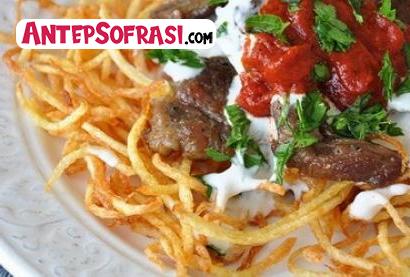 Soğan, sarımsak, et, sıvı yağ ve baharatları bir kaba koyup karıştırın ve buzdolabında 1-2 saat dinlendirin. Patatesleri ince ince doğrayın ve kızgın ...