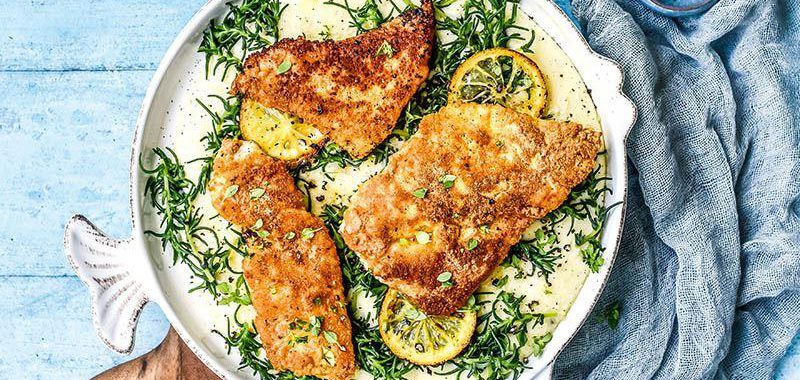 Deniz fasulyesi yatağında çıtır balık için malzemeleriniz hazırsa başlayabilirsiniz.