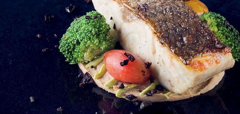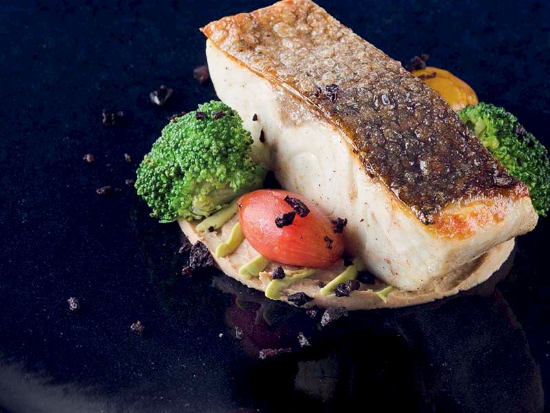 - Bir servis tabağına önce karnabahar püresini yayın. Üzerine sırasıyla sotelediğiniz çeri domatesleri, brokolileri ve pişirdiğiniz balığı yerleştirin. Toz haline getirdiğiniz siyah zeytini serpin ve esmer tereyağını gezdirip servis yapın.
