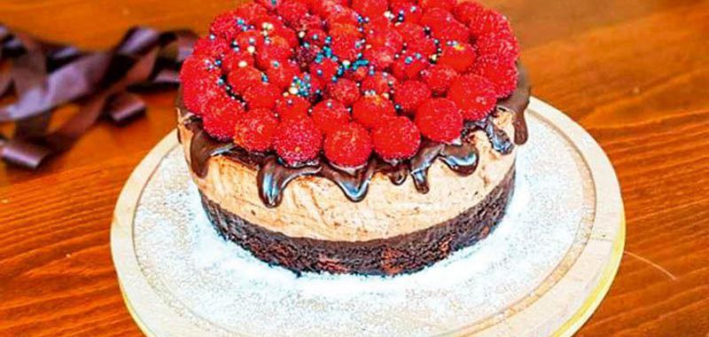 - Çikolataları bir kaseye alıp benmari usulü eritin. Biraz ılınması için bekletin. Bu sırada soğuk kremayı pudra şekeri ile birlikte iyice köpürene kadar çırpın. Çikolata ve çırpılmış kremayı bir spatula ile yavaşça birbirine yedirin. Çikolatalı karışımı kekin üzerine döküp üzerini düzleştirin ve buzluğa koyup en az 5 saat bekletin. Buzluktan alıp kelepçeyi dikkatlice çıkarın (Yanlarda yağlı kağıt olduğu için kelepçe kolayca çıkacaktır).