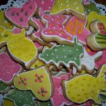 - Hamuru yarım santim kalınlığında açıp kalıpla kestim ve 180 derecede çok hafif pembeleşene kadar pişirdim tamamen soğuyunca beyaz renkle bütün kurabiyelerin kenarlarından geçtim ve royal icınge 2-3 damla su katarak biraz sıvılaştırıp üzerlerini çeşitli renkelerde doldurduk ve dilediğ