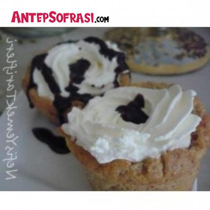 - Bütün malzemeleri karıştırıp kulak memesi kıvamında bir hamur elde ediyoruz, muffin kalıplarına ortası açık kalacak şekilde yerleştiriyoruz. 180° de pişiriyoruz, soğuduktan sonra üzerindeki tarife göre hazırlanmış krem şantimizle içlerini dolduruyoruz(çok kabarıp ortası kapananları oyup açabilirsiniz). Afiyet olsun