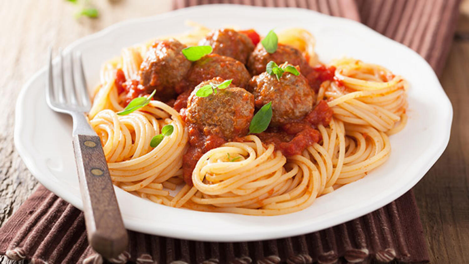 Bu arada köfteler pişene kadar, spagetti suyunu kaynatıp makarnayı haşlıyoruz. Sosunu hazırlıyoruz. Sos için sıvı yağ, sarımsak ve salçayı kavuruyoruz. Rendelenmiş domates, su ve baharatını ilave ederek 10 dakika ağır ateşte pişiriyoruz.
