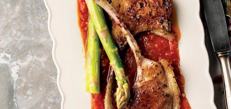 - Ayrı bir tavada kuşkonmazları zeytinyağında soteleyin. Domates soslu pirzolaları yanında kuşkonmazla sıcak servis yapın. Afiyet olsun.