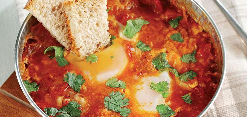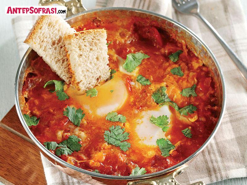 Sosu arayalarak yumurtaları boşluklara kırın ve kısık ateşte pişirin. Kişniş yaprağı ve karabiber serpiştirip sıcak servis yapın.