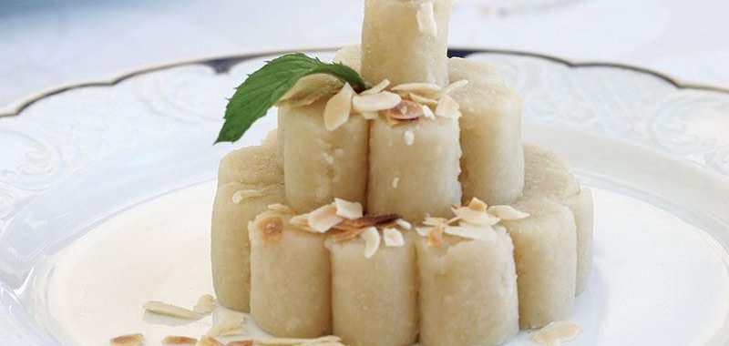 Bademleri ılık suda ıslatıp kabuklarını soyun. Mutfak robotunda un haline gelinceye kadar ezin. Şerbeti azar azar ekleyerek kıvamlı bir hamur elde edinceye kadar karıştırın.