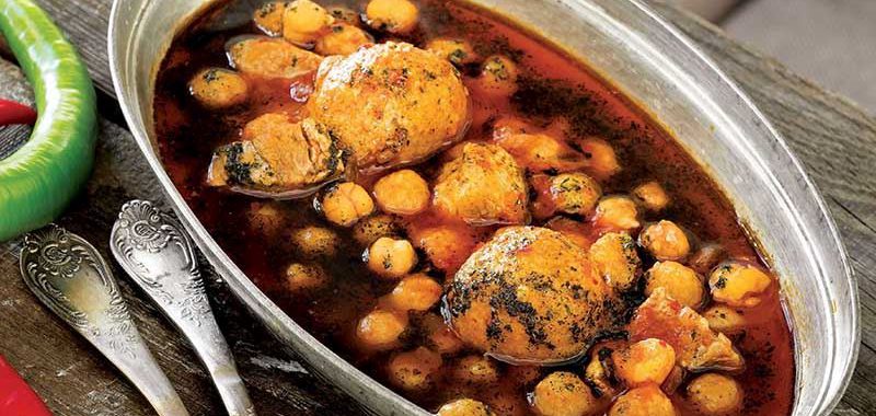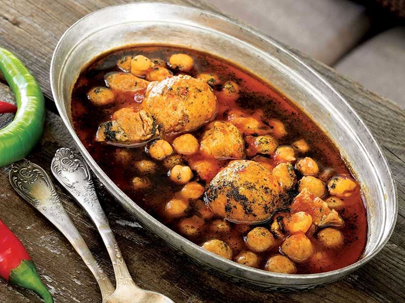 Kaynayan etin üzerine nohut, domates ve biber salçası ilave ederek et ve nohutlar yumuşayıncaya kadar pişirilir.