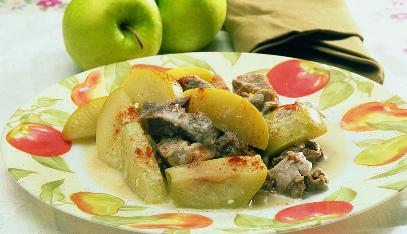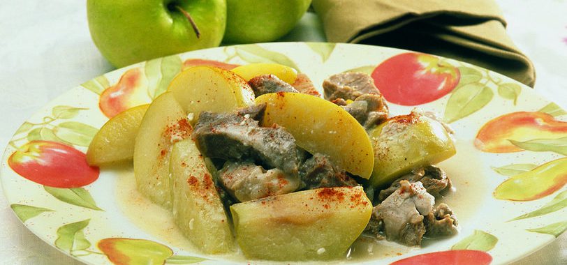 Kavrulmuş etin üzerine 1 kaşık domates salçası ilave edip karıştırılır. Üzerine 4 bardak su konup yumuşayıncaya kadar pişirilir. Pişen etin üzerine suda bekletilen elmalar, Antep pekmezi ve tuz eklenip 5 dakika kaynatılır.
