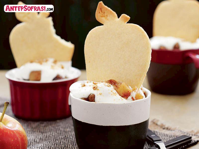 - Elma kurabiyelerini kupların üzerine yerleştirin ve ılık olması için bir kenarda bekletin.