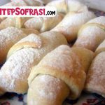 - Hamur için olan malzemeleri yoğurma kabına alıp, un ekleyerek, ele yapışmayacak yumuşaklıkta bir hamur yaptım. Hamuru bütün olarak merdaneyle yarın cm kalınlığında açın yuvarlak keşin,( ben çaydanlık kapağı kullandım böylece hepsi eşit büyüklükte oldu) elmalı içten koyun rulo şeklinde sarın, pişirme kağıdı serdiğiniz tepsiye dizin, 160 derecede çok hafif pembeleşene kadar pişirin. Üzerine pudra şekeri serpin.