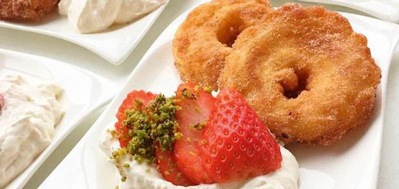 - Ayçiçek yağını bir tavaya alıp ısıtın. Bir tabakta toz şeker ve tarçını karıştırıp hazırlayın. Yağ ısınınca elma dilimlerini yumurtalı harca iki taraflı batırıp dikkatlice yağın içine bırakın. Orta ateşte her iki tarafını da güzelce kızartıp kağıt havlu serilmiş bir tabağa alın. Hafif yağını çekince, hemen toz şeker ve tarçın karışımına bulayın ve servis tabağına alın. Yanında dondurma veya çırpılmış krema ile servis yapın.