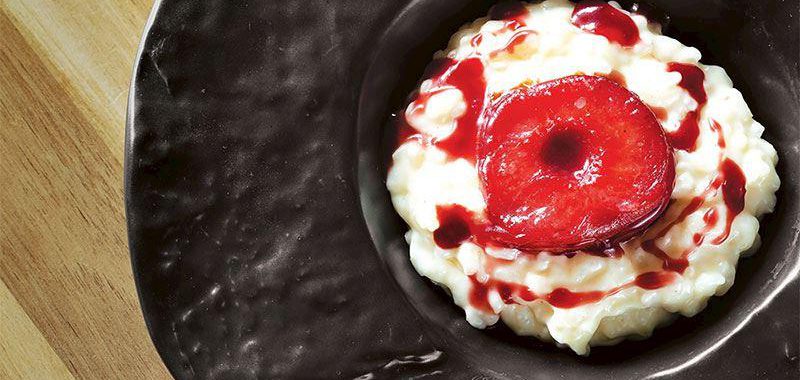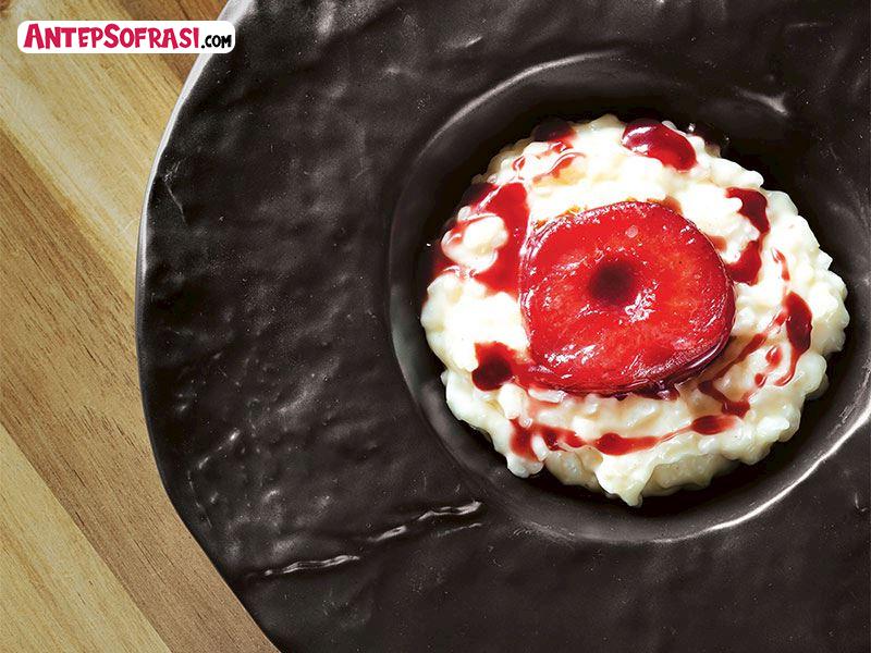 - Bütün malzemeler soğuduktan sonra servis tabağına pirinçli pudingi alın ve üzerine arzu ettiğiniz adette erik yerleştirin.