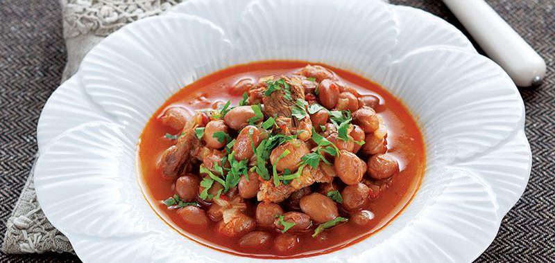 Barbunyaları bir gün önceden suda bekletin. Ertesi gün suyunu değiştirip haşlayın. Soğanı yemeklik doğrayıp zeytinyağında pembeleşinceye kadar kavurun. Etleri ilave edip birkaç dakika soteleyin. Salçaları ekleyin ve karıştırmaya devam edin. Sarımsak, tuz, karabiber ve et suyunu ekleyin ve etler yumuşayıncaya kadar orta ateşte pişirin. Sıcak servis yapın.