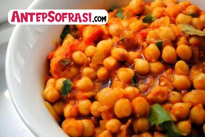 - Akşamdan nohutları ayıklayıp, yıkayıp, bol suda bekletin. Ertesi gün fazla yumuşamadan bir miktar haşlayın. Rendelenmiş veya ince ince doğranmış soğanları yağda kavurun. İçine eti ekleyerek rengi değişinceye kadar kavurun. Kabuğunu soyarak ince ince doğradığınız veya rendelediğiniz domatesleri de ilave edip karıştırın. 2 su bardağı su ve nohutu ekleyerek yemeği ağzı kapalı olarak kısık ateşte yumuşayana dek pişirin. Ateşten indirmeden 10 dakika önce tuzunu ekleyin. Üzerine pulbiber serpip, servis yapın.