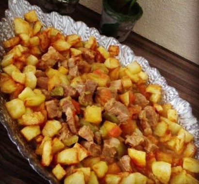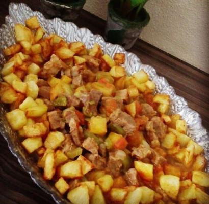 İlk olarak kuşbaşı etleri doğrayın ve tencereye koyun. İçine 2 yemek kaşığı sıvı yağ ekleyin ve biraz kavurun. İçine küp küp doğranmış soğanları ekley...