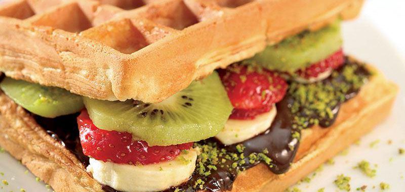 Meyveli waffle , kolay Meyveli waffle yapımı, Meyveli waffle resimli anlatımı ve birbirinden lezzetli Dondurmalı Tatlılar, Lezzet'te!