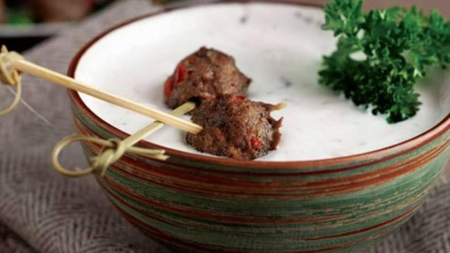 Baharatları ilave edip karıştırın ve bir servis kasesine alın. Köftenizi Frenk maydozu ve yoğurt sos ile birlikte sıcak servis yapın.