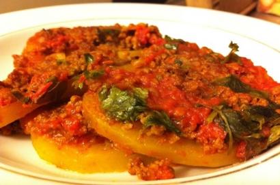 - Domates ve biberler üzerine sirasiyla dizilir.