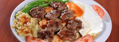 - Yogrulmus köftelik kiymadan limon büyüklügünde parcalar alinir, elde uzunlamasina bastirilarak cöp sislere dizilir.