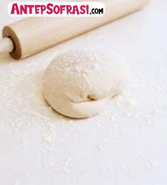 - Buna un yedirilip fazla yoğurulmadan hamur tutulacak, bir kenara un serpip tutulan hamur konacak.