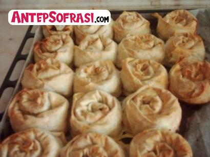 - Bir tarafta yumurta,süt ve yağı karıştır. Yufkayı ser sıvı malzemeyi sür ve dörde böl her bir parçasının kenarına iç malzemelerden koy ve katlayarakgül şeklinde sar. üzerine artan malzemeden sür ve dök.AFİYET OLSUN..