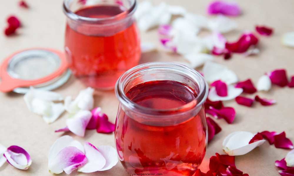 Gül şurubu serin ve rahatlatıcı bir içecektir.
