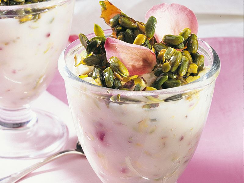 - Muhallebi koyulaşıp kaynamaya başlayınca Antep fıstığı ve gül yapraklarını ekleyip karıştırın. Ocaktan alıp soğumaya bırakın.