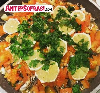 - Hamsilerin üzerine domatesler yuvarlak kesilerek dizilir.