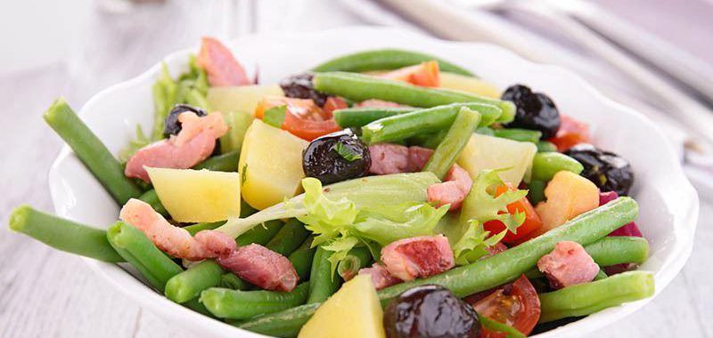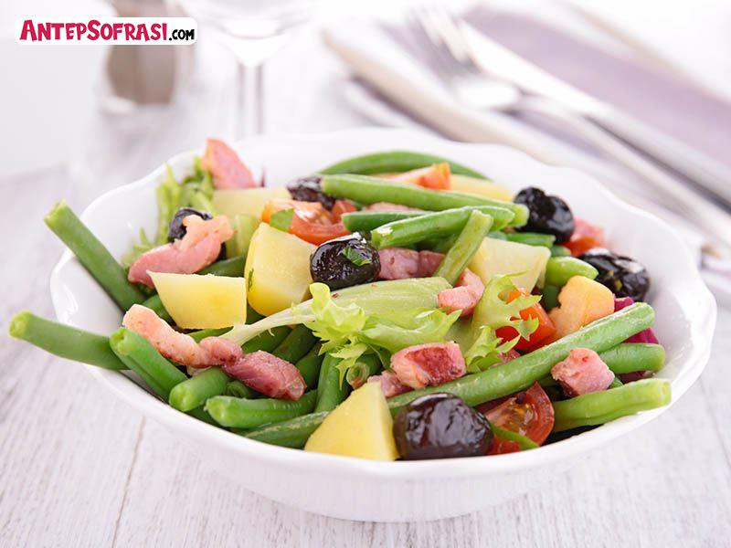 - Öncelikle patates ve fasulyeyi haşlayıp süzün. Başka bir kapta zeytin, hardal, zeytinyağı, limon suyu tuz ve karabiberi iyice çırpın.