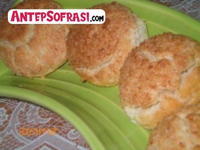 - -Hamurdan ceviz büyüklüğünde parçalar kopararak önce yumurta akına sonra hindistan cevizine bulayarak önceden ısıtılmış fırında pişirin.