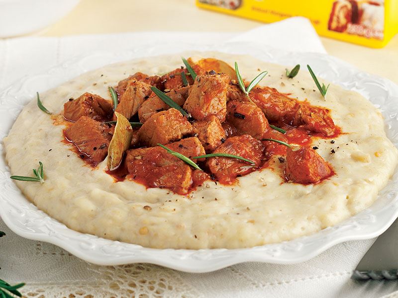Bostan patlıcanların üzerini çatalla birkaç yerinden delin ve fırın ızgarasında yumuşayıncaya kadar közleyin. Hafif soğuyunca kabuklarını soyun ve bir kaseye alın. Bizim Yağ Margarini eritin. Unu ilave edip pembeleşinceye kadar kavurun. Sütü azar azar ekleyip karıştırın. Patlıcanı ilave edip karıştırın. Rendelenmiş kaşar peyniri, tuz ve karabiber ekleyip ocaktan alın. Ayrı bir tencerede yemeklik doğranmış soğan, kuşbaşı et, sarımsak ve defne yaprağını kalan Bizim Yağ Margarin ile kavurun. Salça ve suyu ekleyip etler yumuşayıncaya kadar pişirin. Tuz, karabiber ile tatlandırın. Beğendiyi servis tabağına alıp üzerine etleri yerleştirip servis yapın.