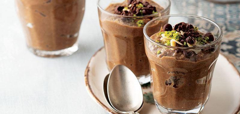 - Avokadoları ve muzları soyarak dilimleyin. Hepsini birlikte, keçiboynuzu ununu da ilave ederek blender’dan geçirin. Vanilya, portakal suyu, süt ve hurmayı da ilave edin. Yumuşak, akışkan bir kıvam alıncaya kadar blender’dan geçirin.