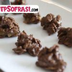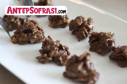 çikolatayı bir kaba alın ben 5 dakika benmari usulü eritin. içine mısır gevreklerini ekleyin ve karıştırın. yağlı kağıt serili bir tepsiye birer kaşık...