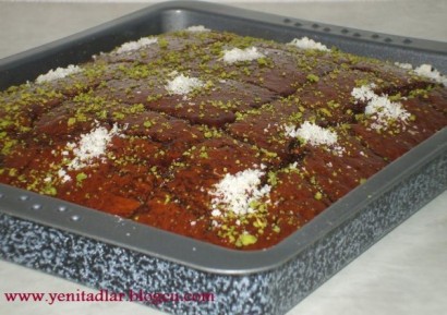 - Yaglanmis kare borcama karisimi dokun ve 165C" pisirin yaklasik 25-30 dakika