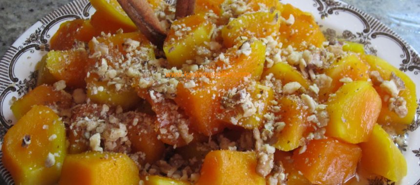 Kaynayan şekerli suyun üzerine, durulanıp suyu süzülmüş kabaklar ilave edilerek,