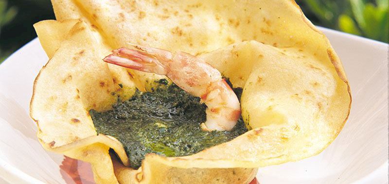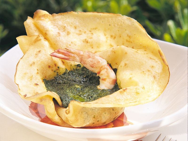 - Soğuyunca kaselerden çıkarıp servis tabağına alın. Kreplerin içine kabaklı karışımı paylaştırıp birer karidesle süsleyin. Sıcak servis yapın.