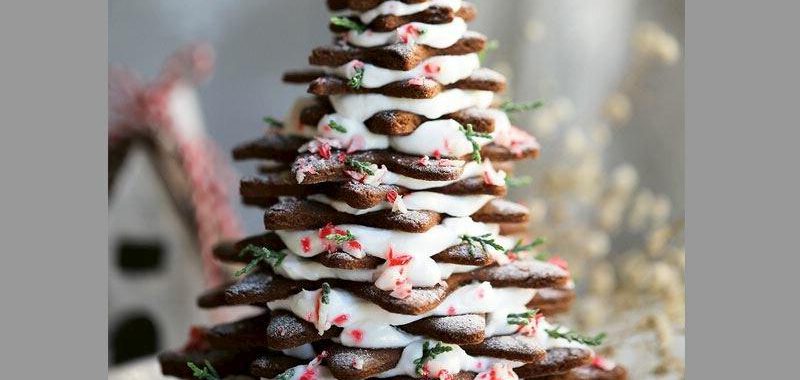 - Ara katlara krema sürüp yıldızları birbirine yapıştırın. Süslemeler ve pudra şekeri ile yılbaşı ağacını tamamlayın.