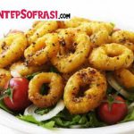 - Haşlanmış patatesleri küçük küçük doğrayalım ve haşlanmış kalamarı bir kaba alalım.