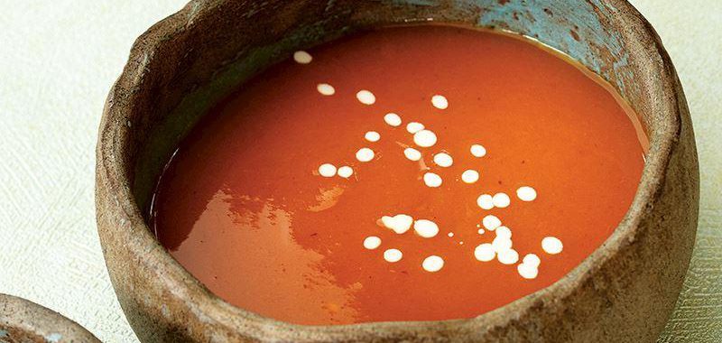 - Soğanları 20 dakika süreyle suda pişirerek öldürün. Suyu azar azar ekleyin. Közleyip soyduğunuz kapya biberleri ve tatlı patatesleri ekleyerek 15 dakika kaynatın. En son elma sirkesini ilave ederek altını kapatın. El blenderı yardımıyla pürüzsüz hale getirdiğiniz çorbayı Bi Nevi Deli yapımı kaju badem yoğurdu ile servis edin.