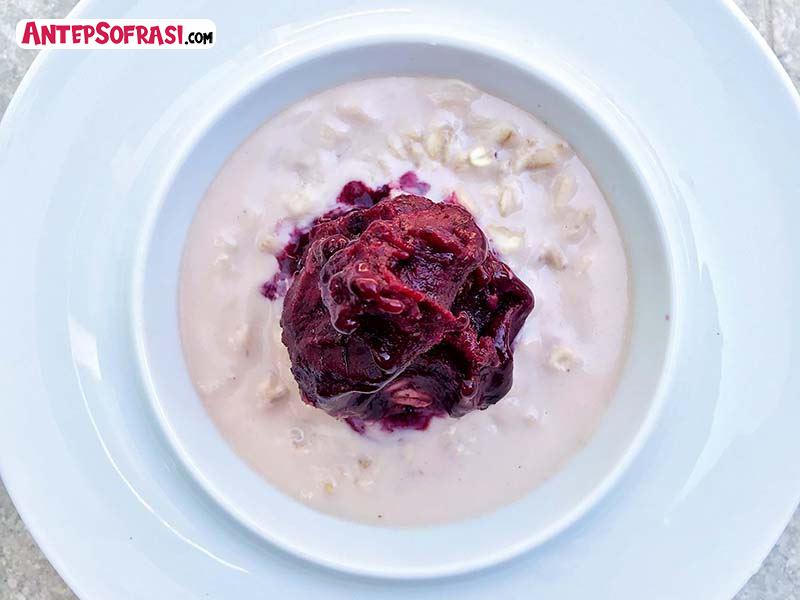 - Buzdolabından aldıktan sonra karadut sorbeyi üzerine koyun ve soğuk servis edin.