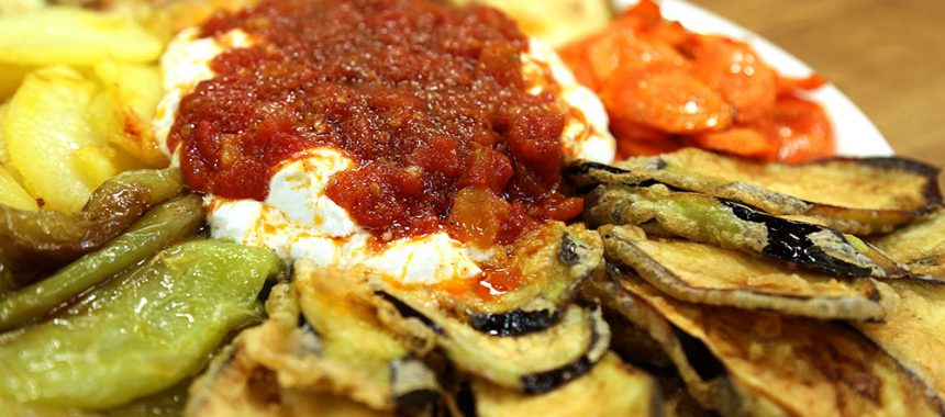 Ezilmiş sarımsak süzme yoğurda karıştırılarak, servis tabağının yanında kızarmış patlıcan, kabak ve biberler ile birlikte servis yapılır.