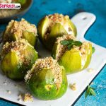 - İncirleri yıkayıp iyice kuruladıktan sonra tabanından tamamen kopmayacak şekilde 4’e kesip, yağlı kağıt serili fırın kabına dizin. Ortalarına 1’er tatlı kaşığı kaymak yerleştirip, yer fıstığı serpin. En son üzerlerine 1’er çay kaşığı gül suyu ve bir tutam karabiber serpin.