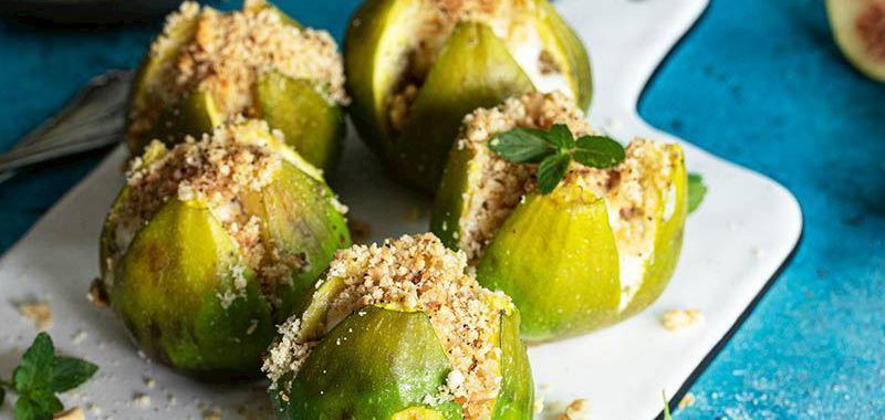 - Önceden ısıtılmış 200 dereceye ayarlı fırında 15 dakika pişirin. Fırından çıkartın, henüz sıcakken üzerlerine 1’er çay kaşığı kadar bal dökün. Kaymaklı inciri nane yaprakları ile süsleyip bekletmeden servis yapın.