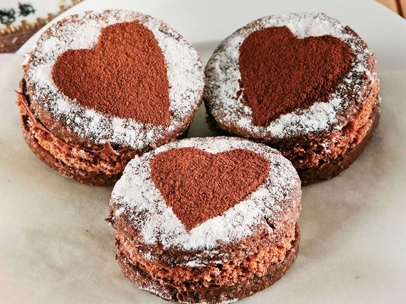 - Süslemesi için; Kurabiyelerin hepsinin üzerine çikolatalı kremadan sürün. Aralarına kek yerleştirip kapatın.