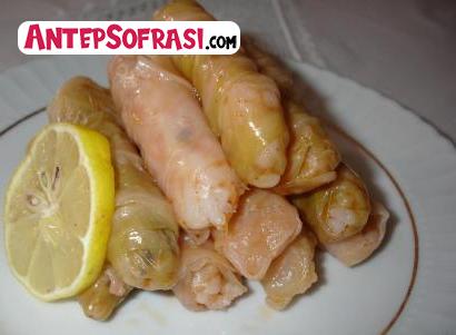 - İçten fındık büyüklüğünde parçalar alınıp şerit haline getirilmiş lahanalara döndürerek sarılır